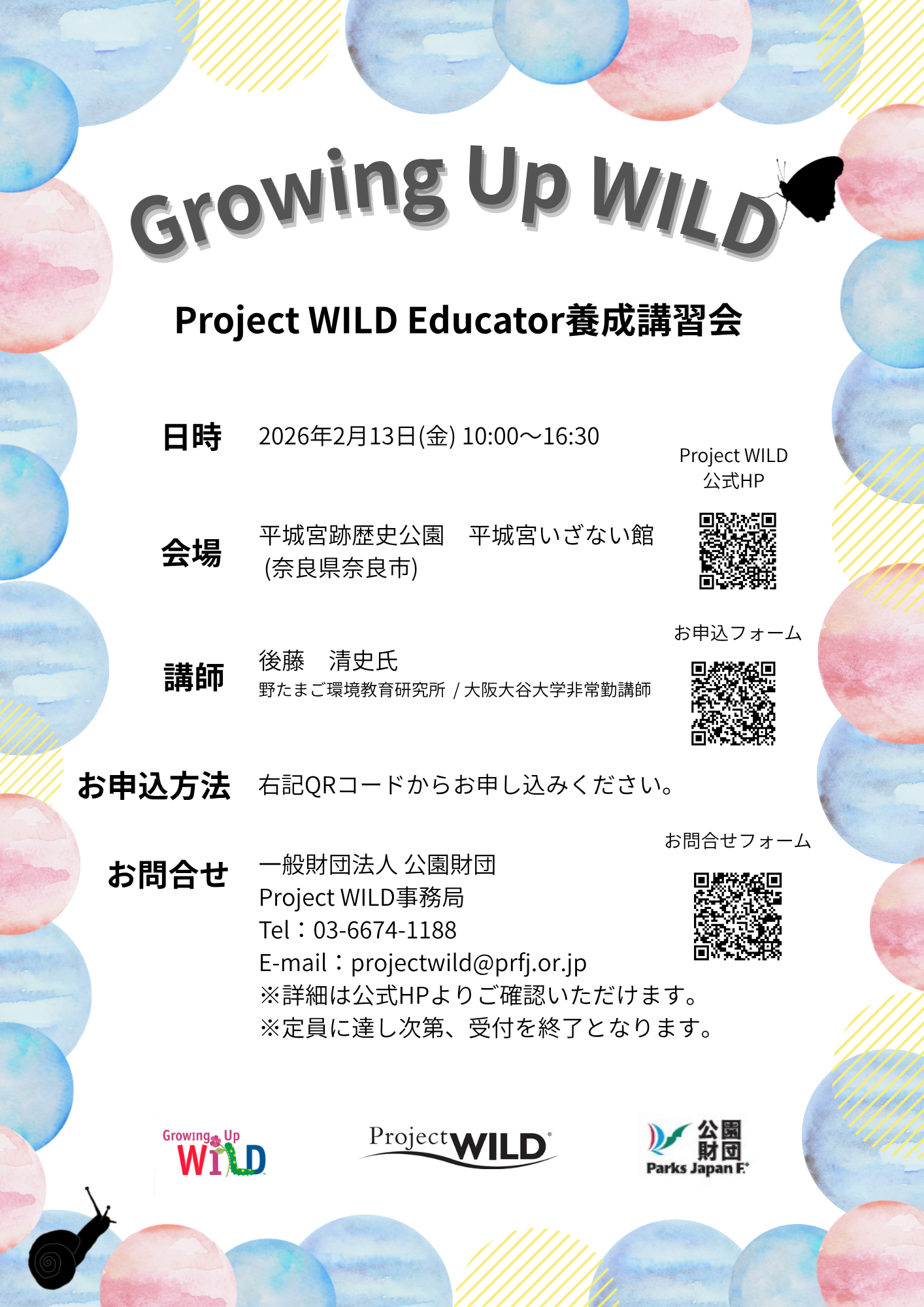 Project WILDから、イベント情報や講習会の情報などをお知らせします。