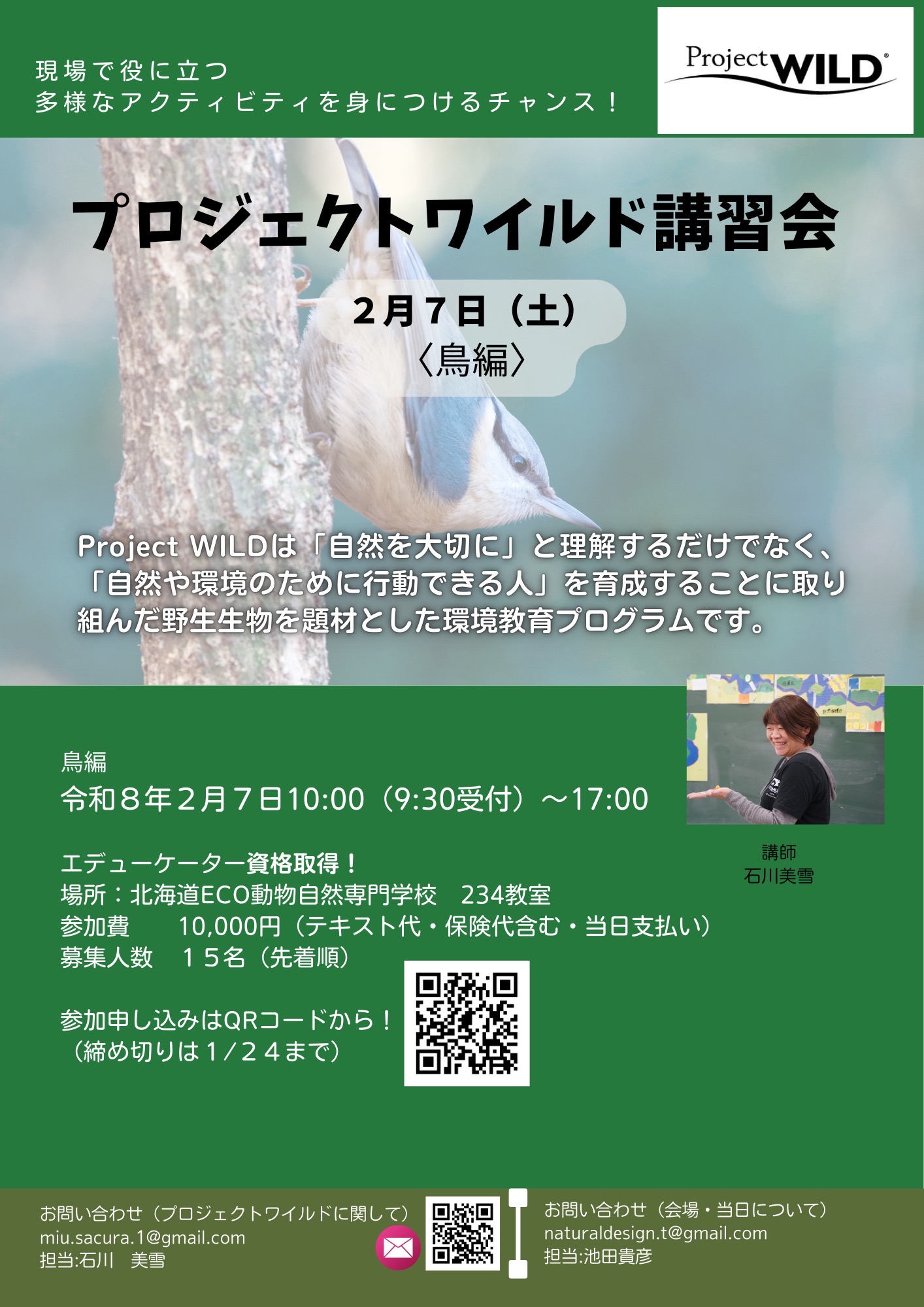 Project WILDから、イベント情報や講習会の情報などをお知らせします。